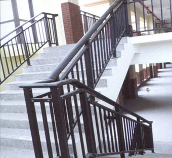 樓梯扶手是樓梯護欄的支撐桿。樓梯扶手按材料來分類為:樓梯高分子扶手、樓梯鐵藝扶手、樓梯不銹鋼扶手、樓梯玻璃扶手、樓梯實木扶手。還有一些特殊樓梯扶手:樓梯發光扶手。 免焊接集成組裝工藝,制作簡單,安裝方便;一通、側通、橫通、底通均為合金鑄件,外表采用靜電防腐噴涂工藝,多種顏色,經久耐用;管材經過高溫熱浸鋅處理,外表靜電防腐噴涂工藝;立柱矩管經過全自動數控設備沖孔,組裝速度快,工期時間短,現場組合安裝。
